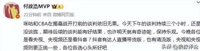 媒体人:CBA和咪咕在新赛季揭幕战前谈判三小时 结果依旧没有谈拢